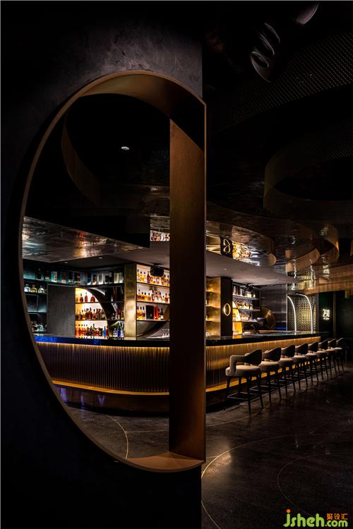 無碰撞!不融合!沒有張揚的顏色輔助,唯有弧形點綴,直擊冷硬的墻體,大片揮灑的波紋墻面,予厚重墻體一絲低調(diào)質(zhì)感?;疑\罩的基底南京酒吧設(shè)計,石材被粗獷地嵌入墻面,光影折射下,石頭“撞擊”地面,一石激起千層浪,暗流涌動,整個空間泛起層層漣漪,抬頭即見多種空間變化。