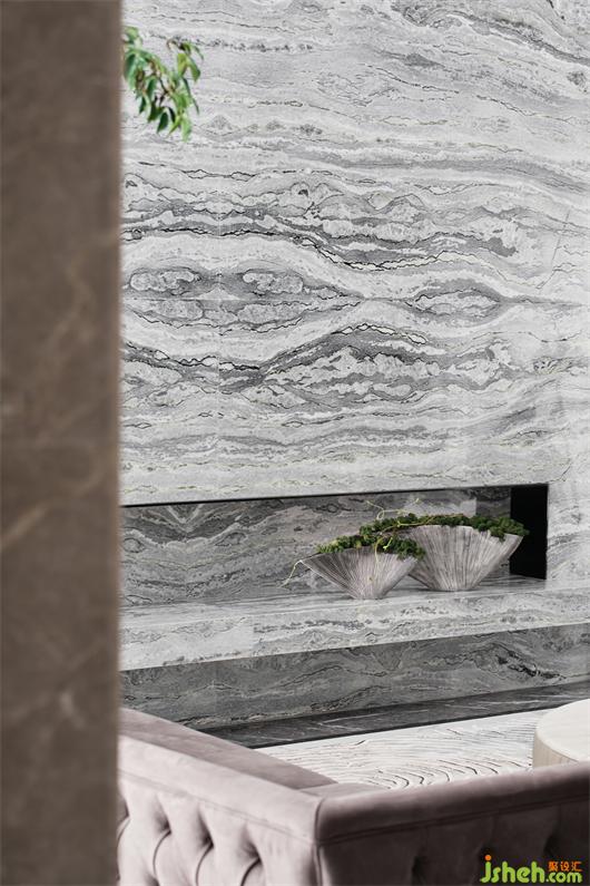 不規(guī)則掛畫,鋪展開親近藝術(shù)的真實感官,給予空間張力與生命力,配合客廳落地窗引入的自然光線,交織出光影的韻律。