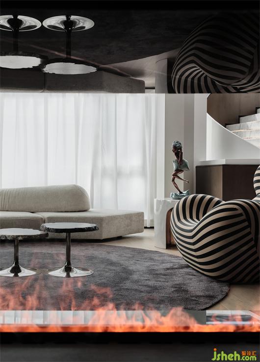 初入客廳,空間已烘焙出情緒升溫的味道。壁爐火焰夾雜著千百般對(duì)生活的奇思妙想,似不經(jīng)意讓生活與裝置間懂得融會(huì)貫通,站在這一方天地,心緒也被氤氳得妙不可言。