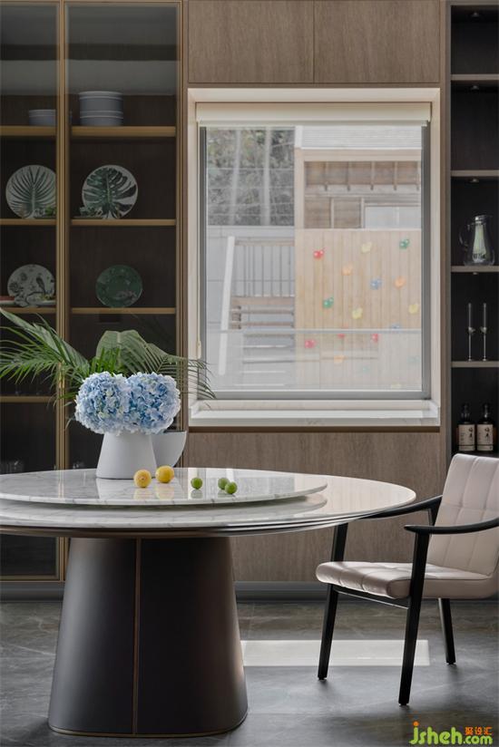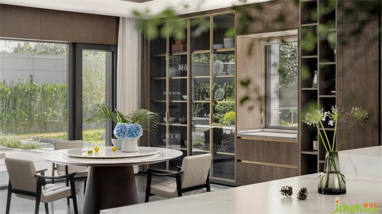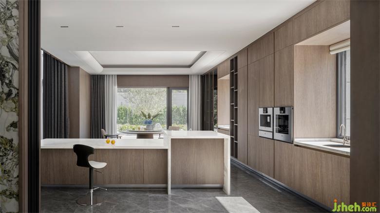 任何家宅,皆需回歸一日三餐。權(quán)衡三代人飲食需求后,別墅設(shè)計中我們?nèi)谌胫形麟p廚房。L型中式雙動線廚房集洗、切、炒、煮黃金動線于一體,讓整個烹飪過程一氣呵成。西廚島臺,無論煮咖啡、制作簡餐、烘焙均可滿足。