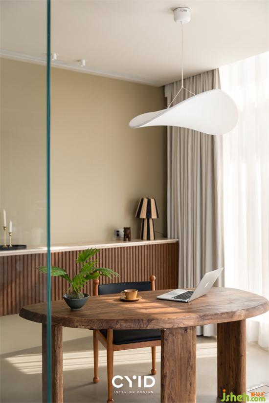 透過(guò)紋理鋪敘光影,朦朧而清逸,整個(gè)場(chǎng)景極具藝術(shù)張力。木作、皮革辦公展廳設(shè)計(jì)予別具一格的質(zhì)感,而可以隨時(shí)框定出的落地窗景,建立起內(nèi)外和諧的空間秩序,人之所處皆成竹在胸。