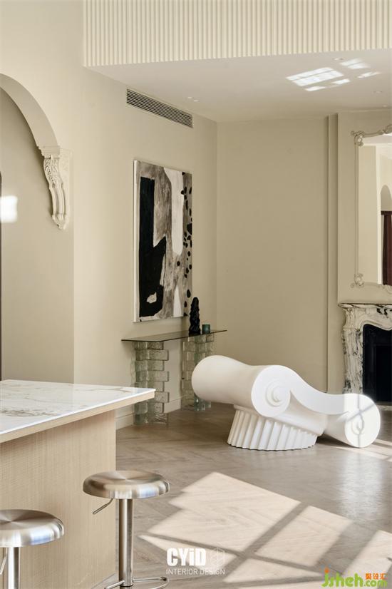 藝術(shù)是攝影基地設(shè)計(jì)美的內(nèi)核,現(xiàn)代元素與復(fù)古元素融合,是溫婉而典雅。觸手微涼的石膏藝術(shù)裝置優(yōu)雅落座,與傾瀉而入的光影共生出予人溫潤(rùn)的柔和之感,而后淺淺淡淡彌散開(kāi)時(shí)光的味道。