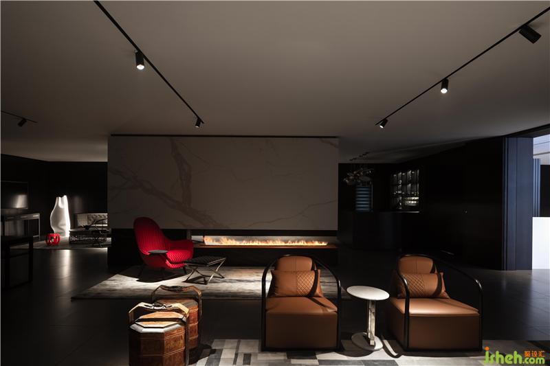 二樓是以接待會所功能定位,產(chǎn)品和使用功能融合一體。體驗者不知不覺融情于此,高調(diào)性的現(xiàn)代霧化壁爐,紅色驚艷的中式圈椅,有上百年歷史的喜盒柜,還有藝術(shù)木雕衣架,所有物件混搭其中,新與舊,東與西,打斷時間自然的思緒,構(gòu)建豐富跳躍的視覺層次。多元素的混搭,對于這個新與舊,精致與粗樸共生的城市,是貼切的,也是應該存在的。讓它和外界能夠很好地鏈接、交融,是不經(jīng)意就會進入這個空間的的理由。