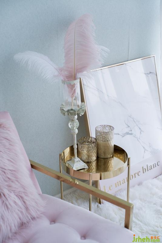 少女粉的座椅、金色復(fù)古的燭臺(tái)、輕柔的白色紗簾充構(gòu)成滿(mǎn)滿(mǎn)的慵懶少女氣息。室內(nèi)設(shè)計(jì)師