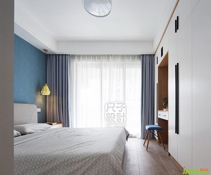 恬靜淡然的主臥,以麻質(zhì)墻紙舒張了空間的視覺效果,硬朗造型的整排衣柜中內(nèi)嵌梳妝臺(tái),最大限度的讓房子“好用”起來。