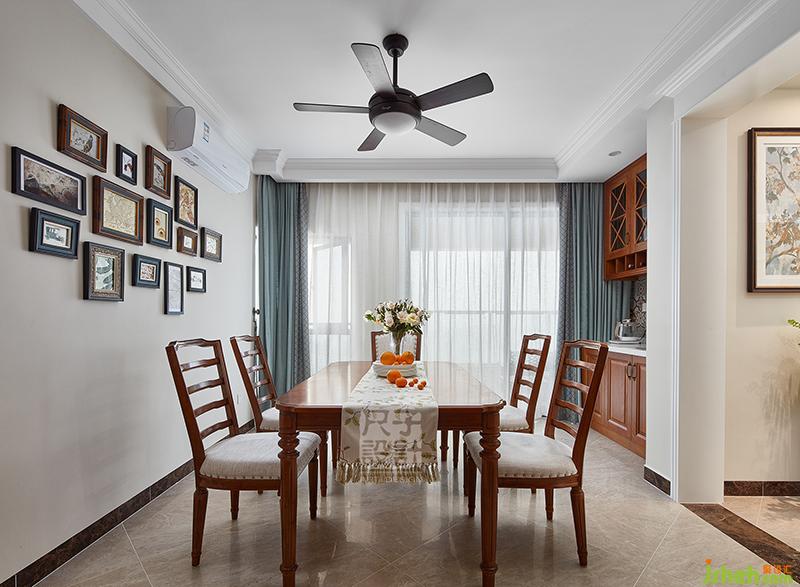 實木材質(zhì)的餐桌椅體現(xiàn)質(zhì)樸醇厚的感覺,錯落有致的裝飾畫,恰到好處的采光,給予家人愉悅的就餐氛圍。