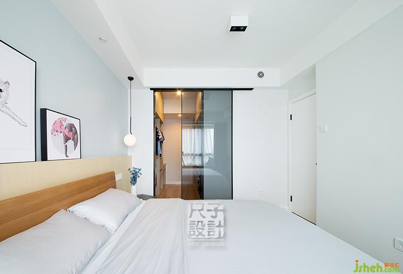 為了使功能性更為豐富,設(shè)計(jì)師在主臥內(nèi)設(shè)置了衣帽間,并用推拉門分隔。