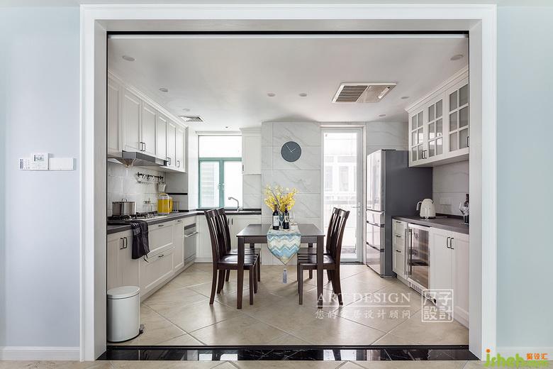 原戶型餐廳和廚房空間較小,難以獨(dú)立規(guī)劃功能分區(qū),因此將二者置于同一個(gè)空間內(nèi),實(shí)現(xiàn)了餐廚一體化。