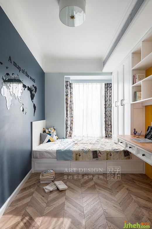深色的墻面,奠定小孩房沉穩(wěn)安靜的基調(diào)。撞色幾何花色的窗簾,清新淡雅而不失童趣,讓空間不失活力。深圳裝修公司