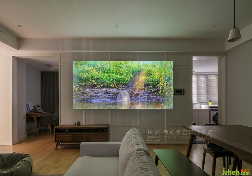 一家人的觀影時(shí)光總是溫馨的。我們將小孩房的房門(mén)做了隱形設(shè)計(jì),讓畫(huà)面透過(guò)投影儀投射在這一整面完整的白墻上,客廳變身為家庭影院;一家四口依偎在沙發(fā),或側(cè)臥在飄窗,在這個(gè)無(wú)需拘束的家中,來(lái)一場(chǎng)電影派對(duì)。