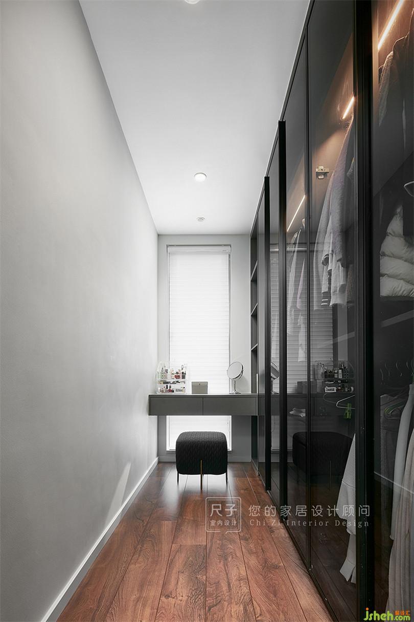 步入式的衣帽間,以玻璃柜門打造時(shí)尚氛圍,S小姐直言:有一種明星衣櫥的感覺。