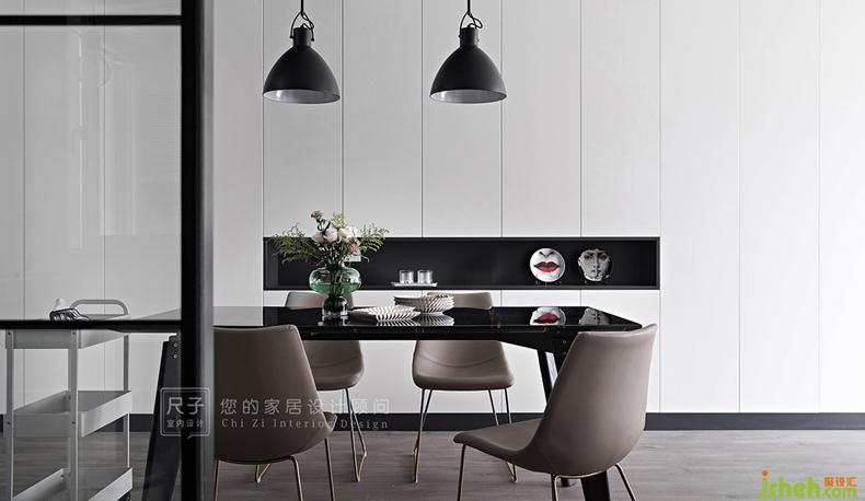 純凈黑的餐桌搭配咖色的皮質(zhì)座椅,再加上金色的點綴,使得空間充滿摩登時尚的氣息。