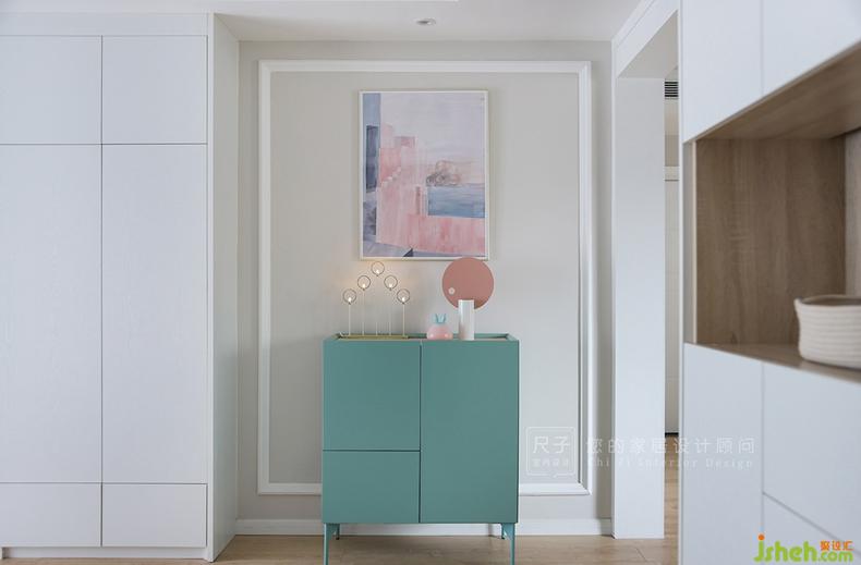 玄關(guān)是我們對家的第一印象。豆綠與千禧粉,清清爽爽的色調(diào),讓空間充滿鮮活的氣息。深圳設(shè)計公司