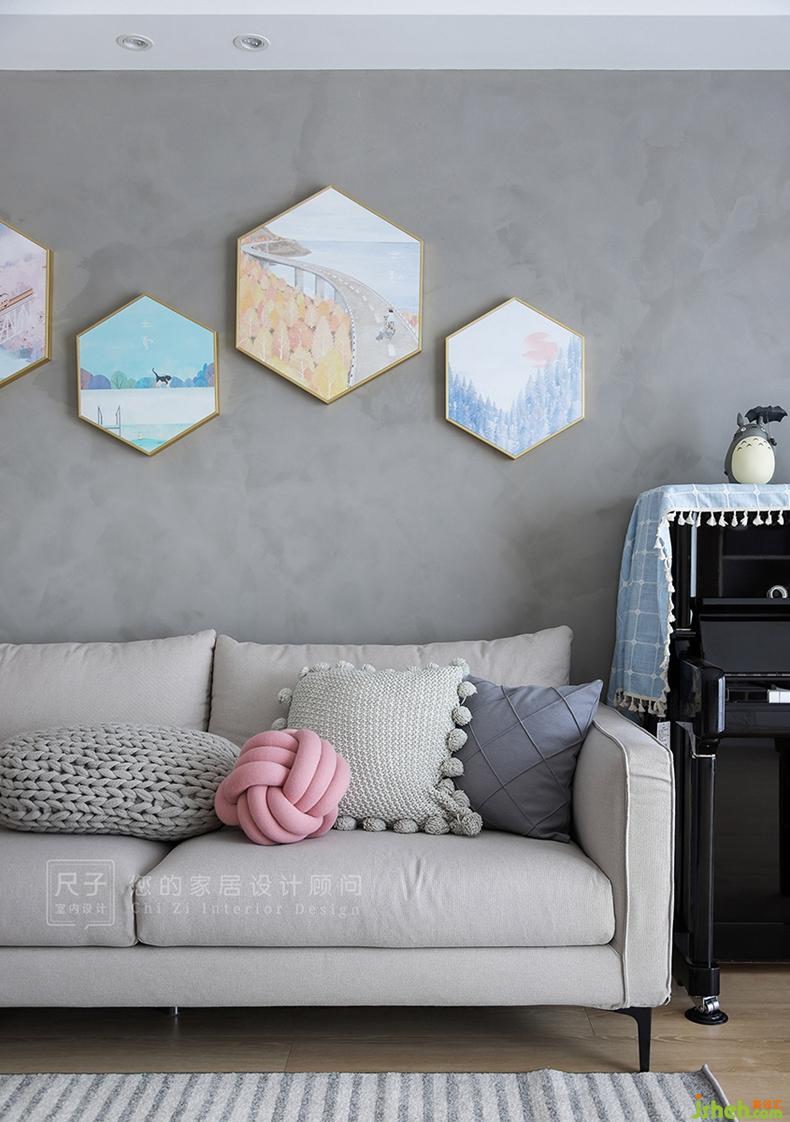 白色+木色的電視柜給空間增添一抹溫潤(rùn)的質(zhì)感,暫不打算安裝電視,但是預(yù)留出了位置?,F(xiàn)在這里還可以作為給孩子布置每月主題,發(fā)揮創(chuàng)意的地方。