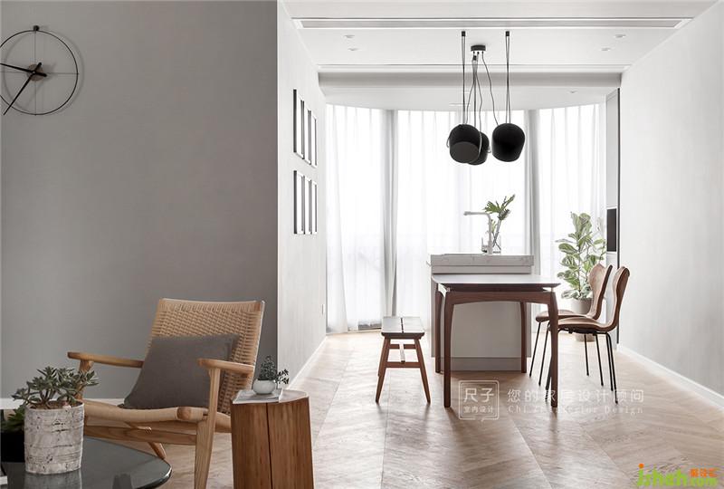 將陽臺(tái)封入室內(nèi),餐廳收獲了圓弧落地窗以及一室陽光,有風(fēng)有景,用餐時(shí)光也變得悠閑起來。吧臺(tái)設(shè)計(jì)有著巧妙的構(gòu)思,下方收納格讓其能承擔(dān)起餐邊柜的作用。