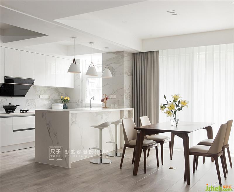 一方小窗,讓客餐廚以及書房成為一個整體。即使丈夫身處書房,也能透過窗洞第一時間關(guān)注到在餐廚忙碌的妻子,關(guān)愛與陪伴皆在細(xì)微之處。