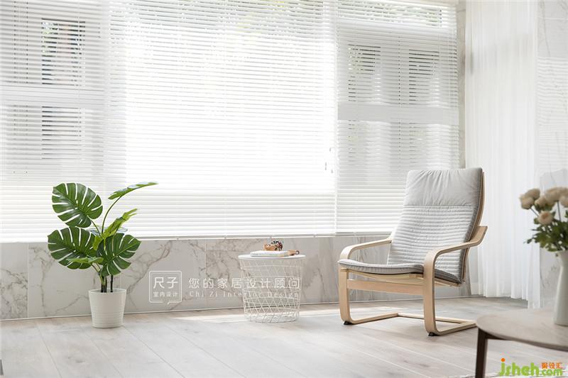 木材、藤椅將內(nèi)擴(kuò)的陽臺與整個主空間聯(lián)系在一起,讓業(yè)主以一種更親近自然的方式生活:“每當(dāng)坐在這里看書時,拉開百葉簾,都能享受微風(fēng)吹拂的感覺”。
