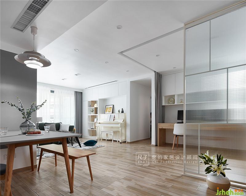 本案例是位于廬峰翠苑的學位房,承重墻較多,空間結構不易更改;因此我們主要從布局入手重新劃分區(qū)域,以通鋪的淺木色連接各個空間,讓家更顯寬敞通透的同時又能滿足業(yè)主的使用需求。