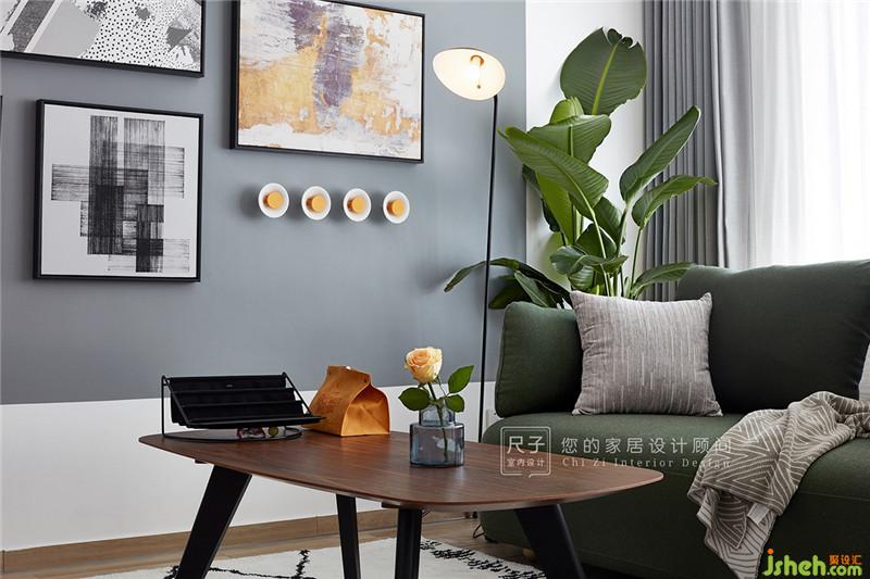 墻面局部分色的設計與大小不一的掛畫搭配,讓客廳氛圍滿滿。室內設計師