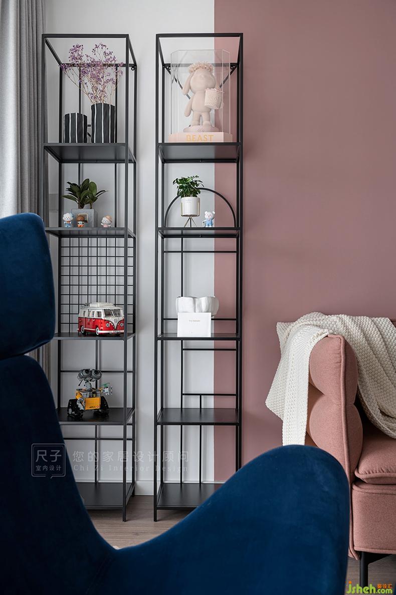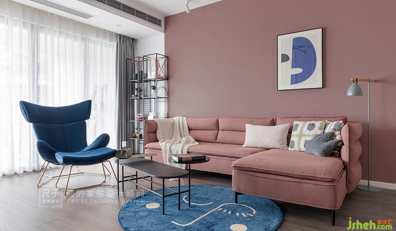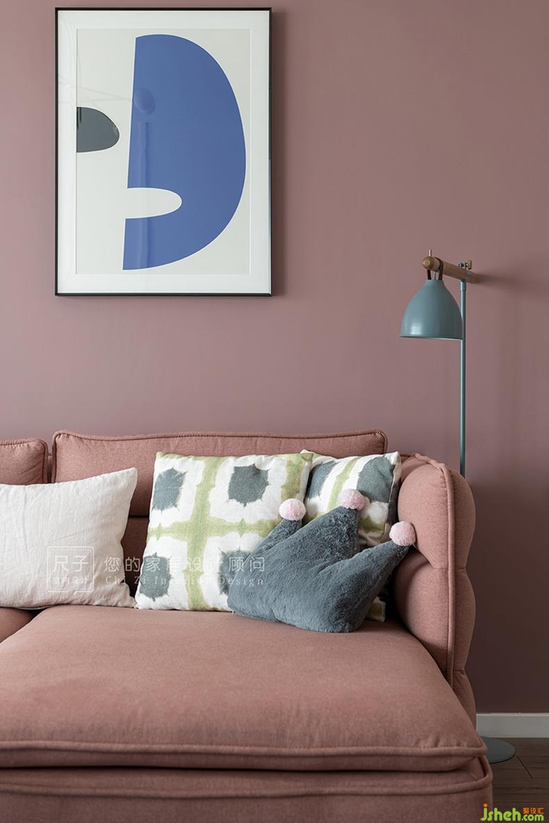 客廳主要通過軟裝打造業(yè)主想要的溫馨氛圍。室內(nèi)設(shè)計師大背景以及主家具色彩皆為業(yè)主喜愛的臟粉,這種柔美而不失風(fēng)情的色彩,透著復(fù)古輕奢的優(yōu)雅知性,二者在明度上的區(qū)別,讓空間有了層次韻律的變化。