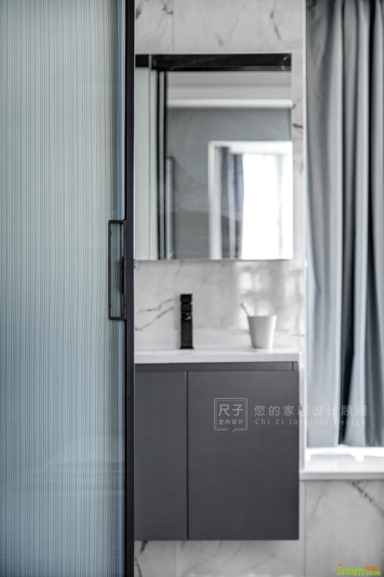 主衛(wèi)通過長虹玻璃推拉門與主臥相隔,透光不透明的特性既能有效阻擋水汽,又不妨礙空間采光。
