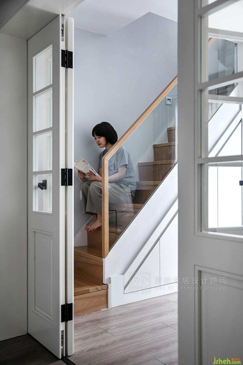 推開折疊門,是帶閣樓的臥室,業(yè)主希望設計為loft結構,暫不做過多裝飾,室內設計師留待以后作為兒童房/父母房以及孩子的活動室