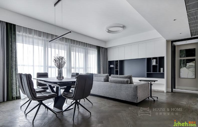 在高級(jí)灰的空間中,點(diǎn)綴富有生機(jī)的淺綠色窗簾、抱枕,以及質(zhì)感非常的灰棕調(diào)家具。當(dāng)光線照進(jìn)屋內(nèi)的那一刻,溫暖、舒適與沉靜,在內(nèi)心充盈。