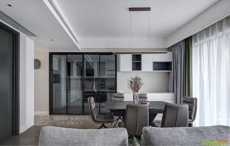 砸掉餐廚之間的墻,改做玻璃推拉門,廚房的采光得到很大改善;一旁的餐邊柜同樣是實(shí)用的收納空間。
