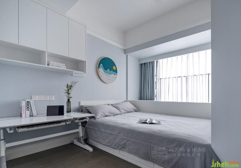目前孩子年紀(jì)尚小暫不考慮分房睡,因此選用高低床。孩子成長的不同階段,他們的的生活需求也會(huì)有所變化,室內(nèi)設(shè)計(jì)師在右側(cè)留白出大片空間,留待主人慢慢添加。
