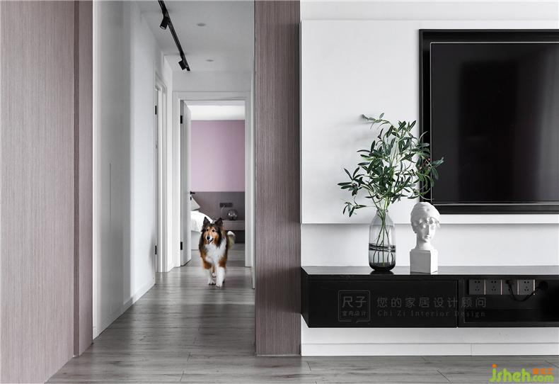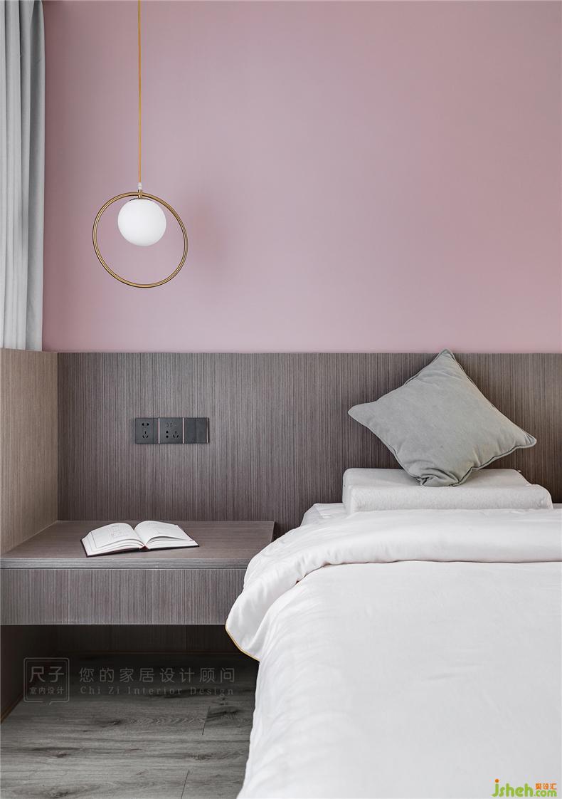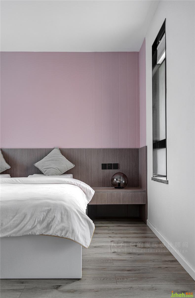 有別于客餐廳的理智克制,主臥是被溫柔粉包裹的溫馨世界,室內(nèi)設計師木質(zhì)與?;技毭艿募y理讓清透的空間有了更深刻的質(zhì)感。