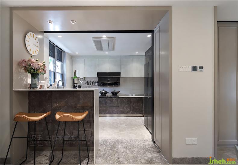 簡(jiǎn)化裝飾,墻面柜體以柔和的線條賦予空間挺拔的韻味;室內(nèi)設(shè)計(jì)師高級(jí)灰依舊發(fā)揮著它調(diào)劑作用,加州橙、檸檬黃都在它的包容下優(yōu)雅而自持。