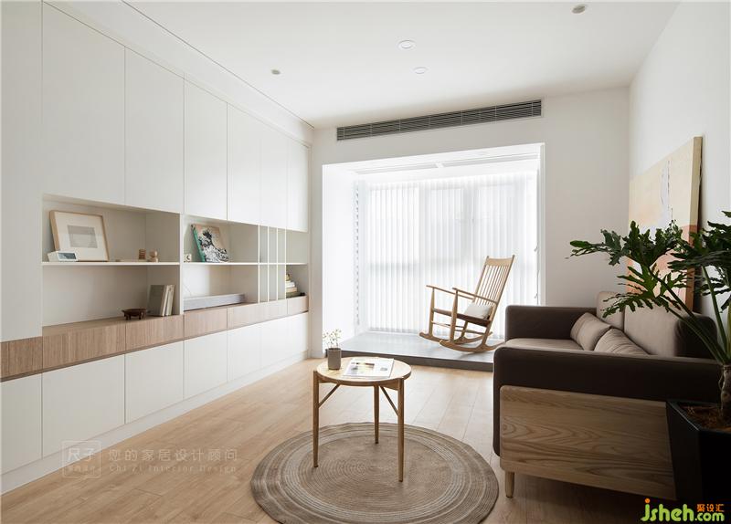 客廳以白色和木色為基調(diào),布局簡潔大方,大面積的白色搭配百葉窗,賦予空間簡約質(zhì)樸的韻味。