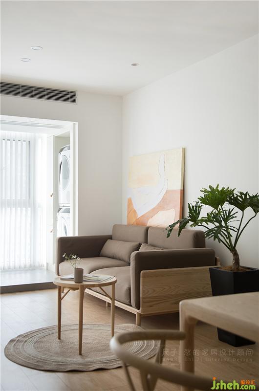 理想中“家”的模樣,簡單而又純粹,便是在這一隅方寸內(nèi),陽光充足,綠意盎然,每一寸陽光都自有歡喜。室內(nèi)設(shè)計師以白色為主調(diào),配以淡灰、木色,材質(zhì)方面多用白蠟?zāi)?藤編材質(zhì),營造自然質(zhì)樸、文藝的感覺。