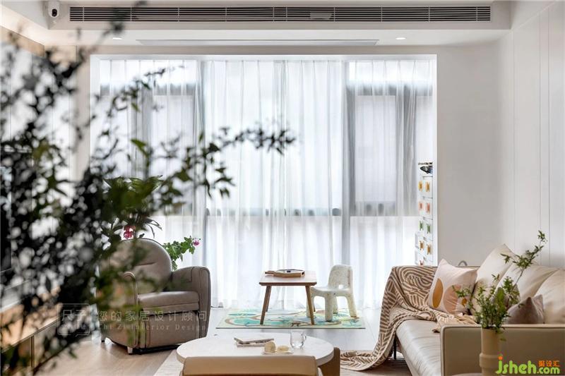 在這個三代同堂的家中,空間與空間的互通性、交流性是設(shè)計師考慮的第一要義。尺子室內(nèi)設(shè)計選擇將陽臺擴(kuò)進(jìn)客廳,開辟出一塊屬于孩子們的活動區(qū),一塊親子交流的小天地。在任何一個平凡的午后,與家人在客廳沏上一壺茶小敘生活,或是同孩子在這里搭建“城堡”、嬉戲歡騰,便是最真實的幸福。