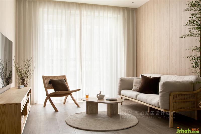 客廳色調(diào)清淺而純粹,原木色的運用給整個空間帶來溫潤的觸感。