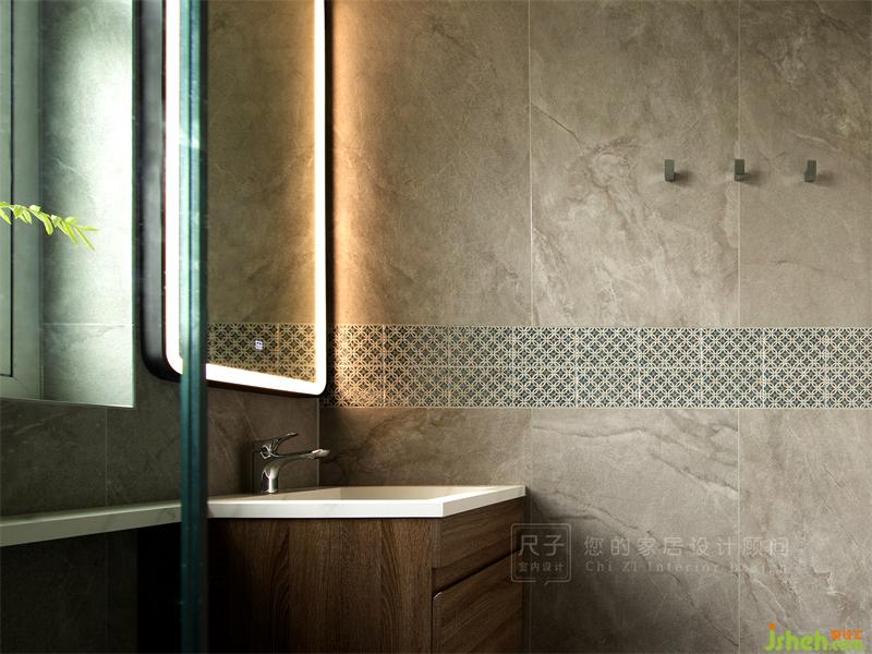 做舊的灰色瓷磚有一種古樸大氣的模樣,小花磚的點綴讓空間顯得復古又不失活潑。
