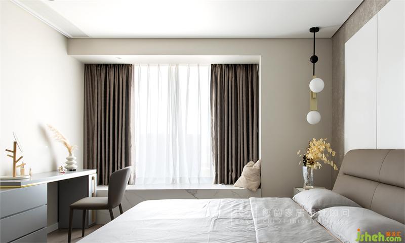 主臥的打造以靜謐舒適為主,讓居住者沉浸在米咖色調(diào)所帶來的溫暖氛圍中。