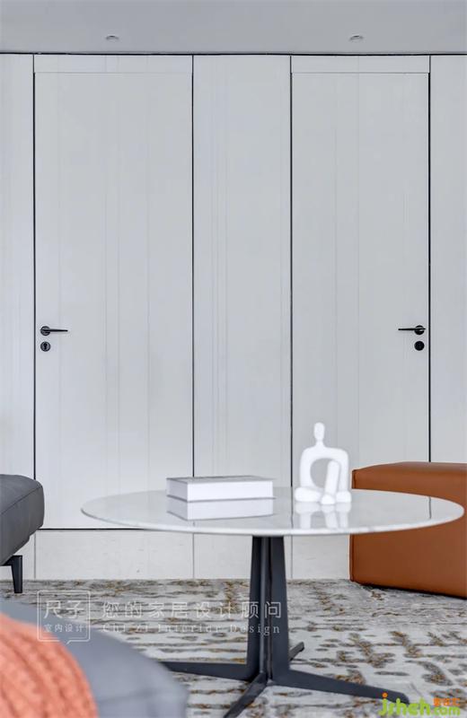 過道一側(cè)的房門由原本的深木色改為與墻面一致的暖白色,顯得更加高級大氣。