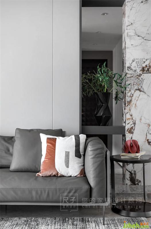電視墻的巖板,是玄關(guān)柱子材質(zhì)的延伸,與素凈的木飾面形成對(duì)比,不過(guò)于花哨,卻不失亮點(diǎn)。