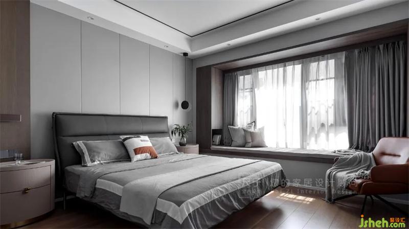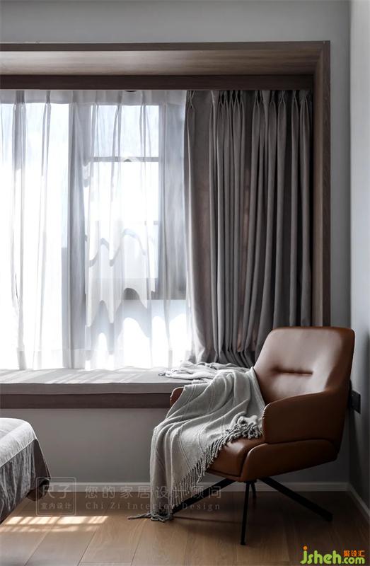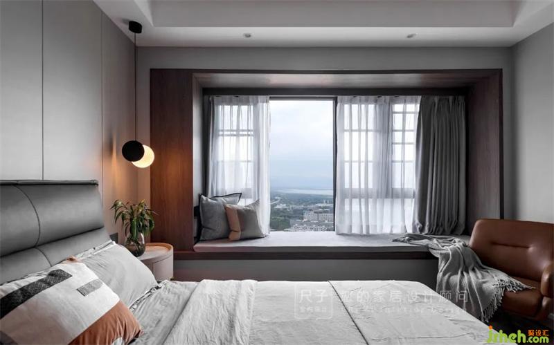 床頭增加小吊燈、壁燈、豎向燈帶等氛圍光,豐富空間燈光層次。利用木色護(hù)墻板將飄窗劃分成一個(gè)大人與小孩互動(dòng)的地方。