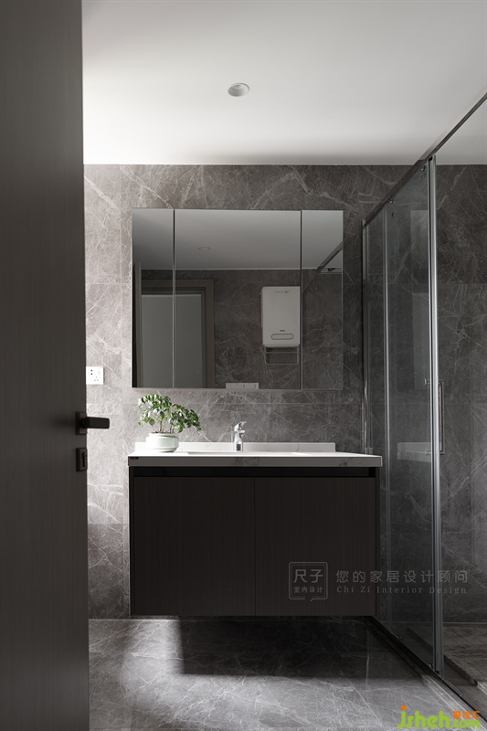 主衛(wèi)經(jīng)過打散重組調(diào)整成方正的空間,使用舒適度和空間利用率得以提高。墻地一體瓷磚通鋪,在陽光的照耀下,瓷磚紋理碧波蕩漾,恰到好處的賦予空間足夠的溫度。