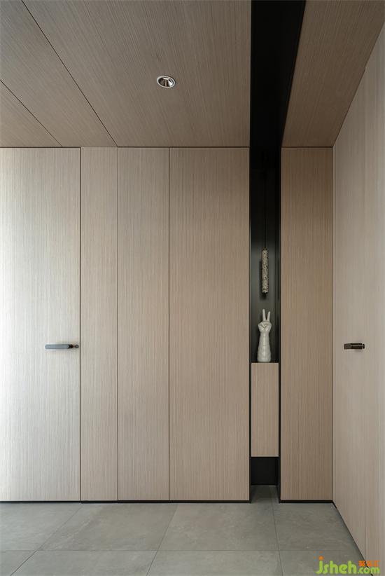 玄關(guān)是重要的過(guò)渡空間,深色的瓷磚結(jié)合木質(zhì)天花,我們用一個(gè)“木盒子”將玄關(guān)區(qū)域清晰界定出來(lái),深圳家裝設(shè)計(jì)讓人真切感受到從戶(hù)外回到了自己的私人領(lǐng)地。