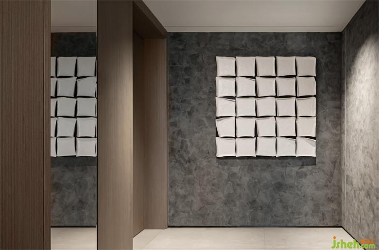 獨(dú)立的內(nèi)玄關(guān),保證了相對私密的空間界定,以及居住的儀式感。深圳家裝設(shè)計(jì)墻面嵌入了磨砂玻璃,以此改善內(nèi)玄關(guān)與主衛(wèi)的采光。