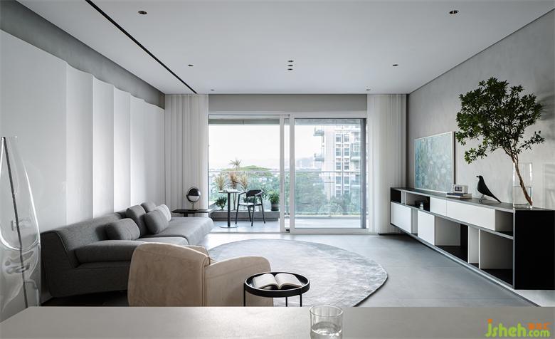屋主希望家里是開闊通透的,于是便舍棄了笨重的茶幾,深圳家裝設(shè)計(jì)以一塊不規(guī)則造型的地毯,圈出適合孩子玩樂的“安全區(qū)”。