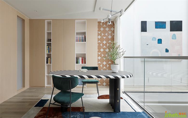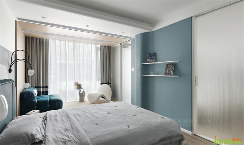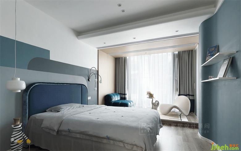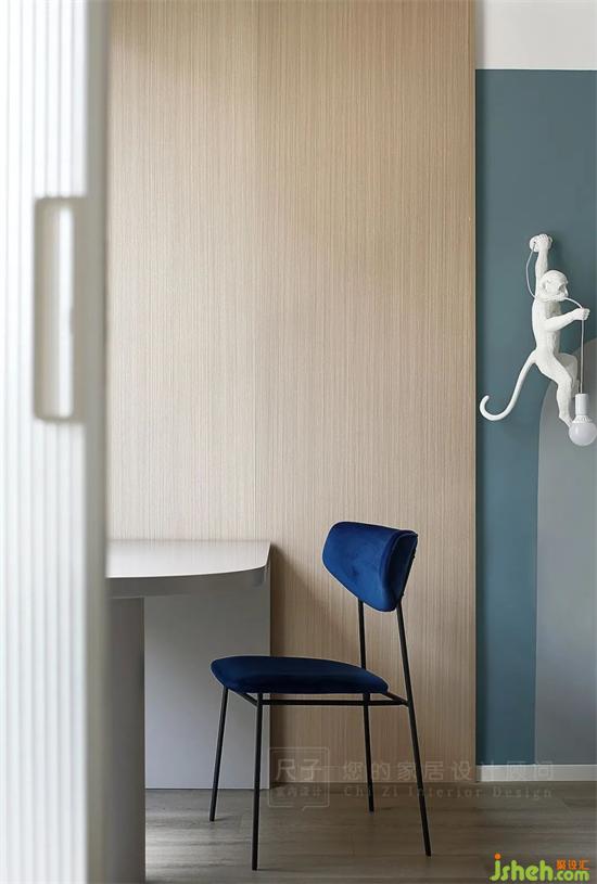 另一頭是孩子們的臥室,高級(jí)灰做底,藍(lán)色加以點(diǎn)綴,深圳聯(lián)排別墅設(shè)計(jì)色塊組合讓空間更具靈動(dòng)層次感。
