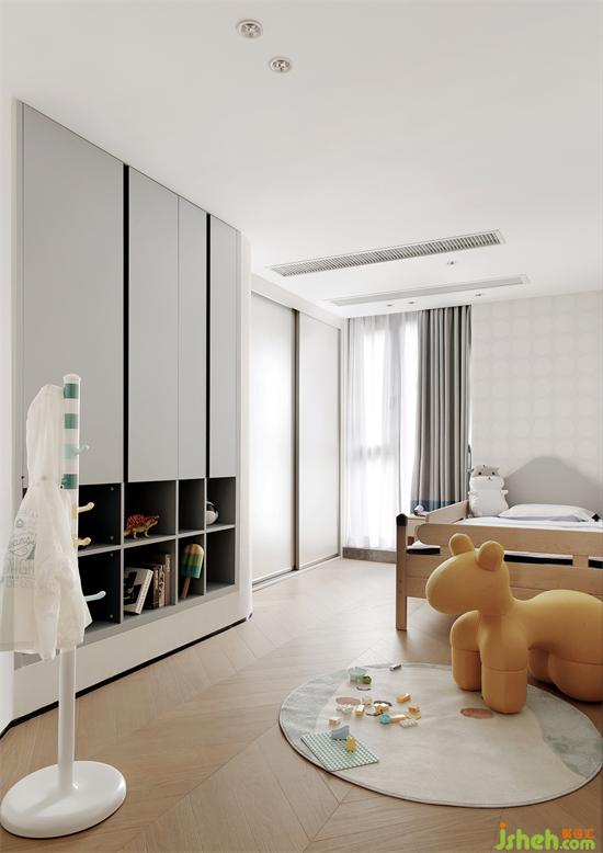 小孩們的生活不是一成不變,家具擺放也時(shí)常發(fā)生變化,深圳家裝設(shè)計(jì)通過(guò)淡淡的粉和灰色調(diào)、軟裝、墻紙的搭配來(lái)體現(xiàn)一些兒童化屬性,不做過(guò)度的裝飾限制小孩房未來(lái)發(fā)展的可能性。