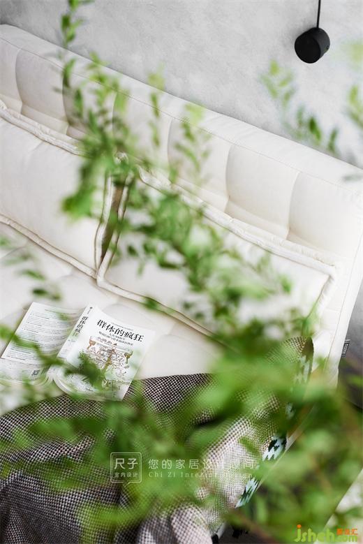 白+木色明度較高不壓抑,家裝設(shè)計綠枝賦予生命力,朦朧陽光為書房帶來一絲溫柔。