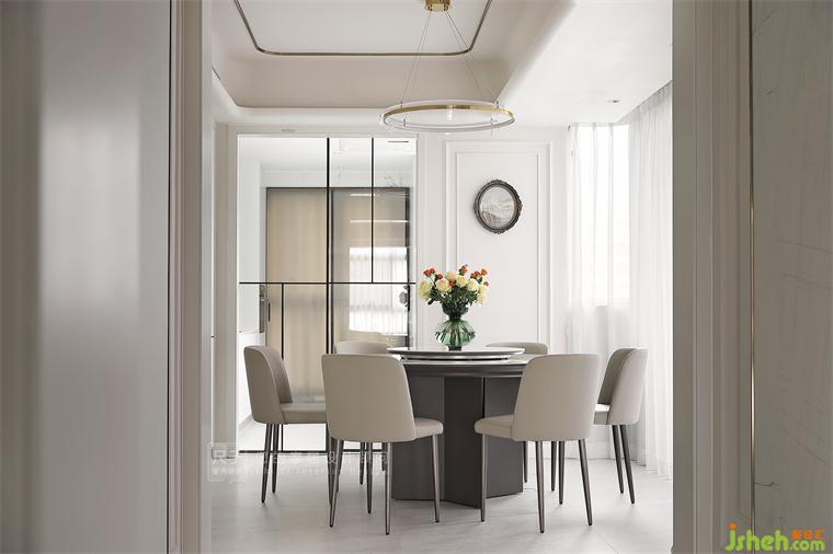 餐廳軟硬平衡又能彰顯簡(jiǎn)潔的華麗,掛畫與線條增添一絲低調(diào)時(shí)尚的輕法式格調(diào),白色餐邊柜與紗簾透過的光線,深圳裝修設(shè)計(jì)讓空間呈現(xiàn)干凈明亮的質(zhì)感,與家人在這里探尋藝術(shù)與生活深層的感知。