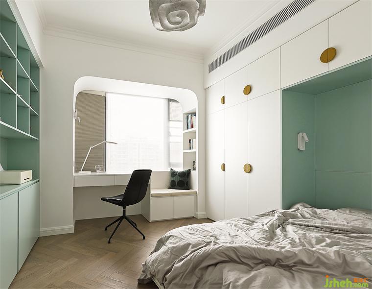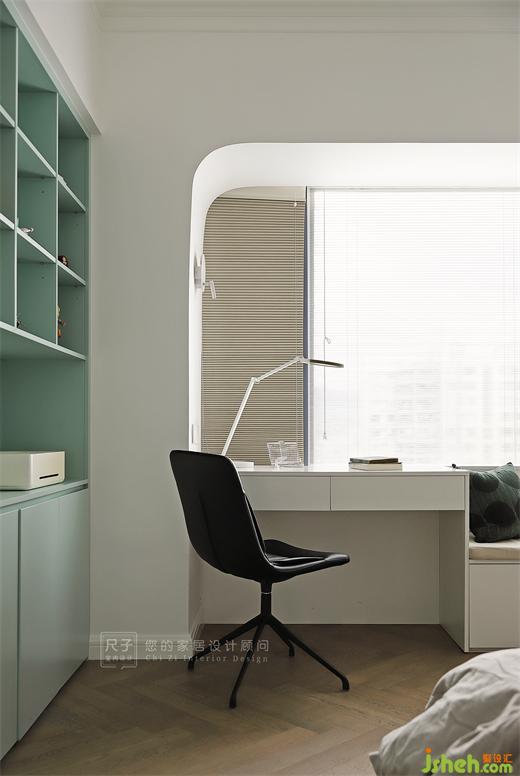 馬卡龍綠與白色散發(fā)著夢(mèng)幻的氣息,陽(yáng)光透過(guò)百葉窗滲入,整個(gè)空間靈動(dòng)又夢(mèng)幻,打造屬于孩子的私密場(chǎng)域。