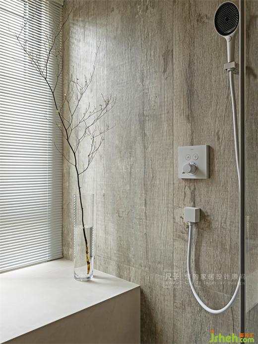 主衛(wèi)整體開闊通透,線性燈帶暖光與巖板一冷一暖的碰撞,高級又美觀,裝修設計陽光在淋浴房墻面暈染成更加細膩迂回的光影。